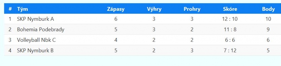 Do soutěže se přihlásila 4 družstva žen: SKP Nymburk A, B, Bohemia Poděbrady a Volleyball Nymburk.